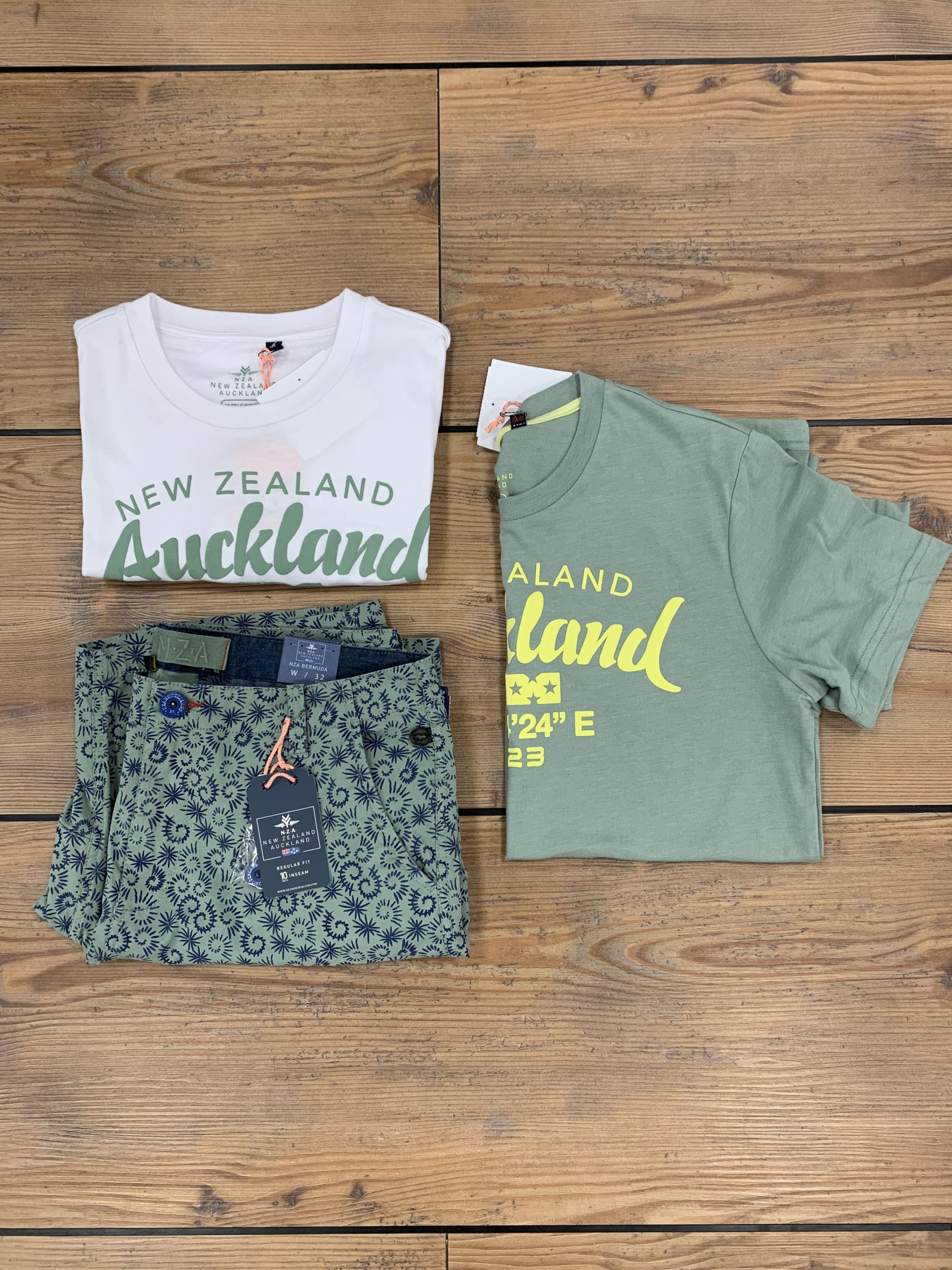 - New Zealand: T-Shirt weiß 25.90€, T-Shirt 25.90€, Kurze Hose 79.90€