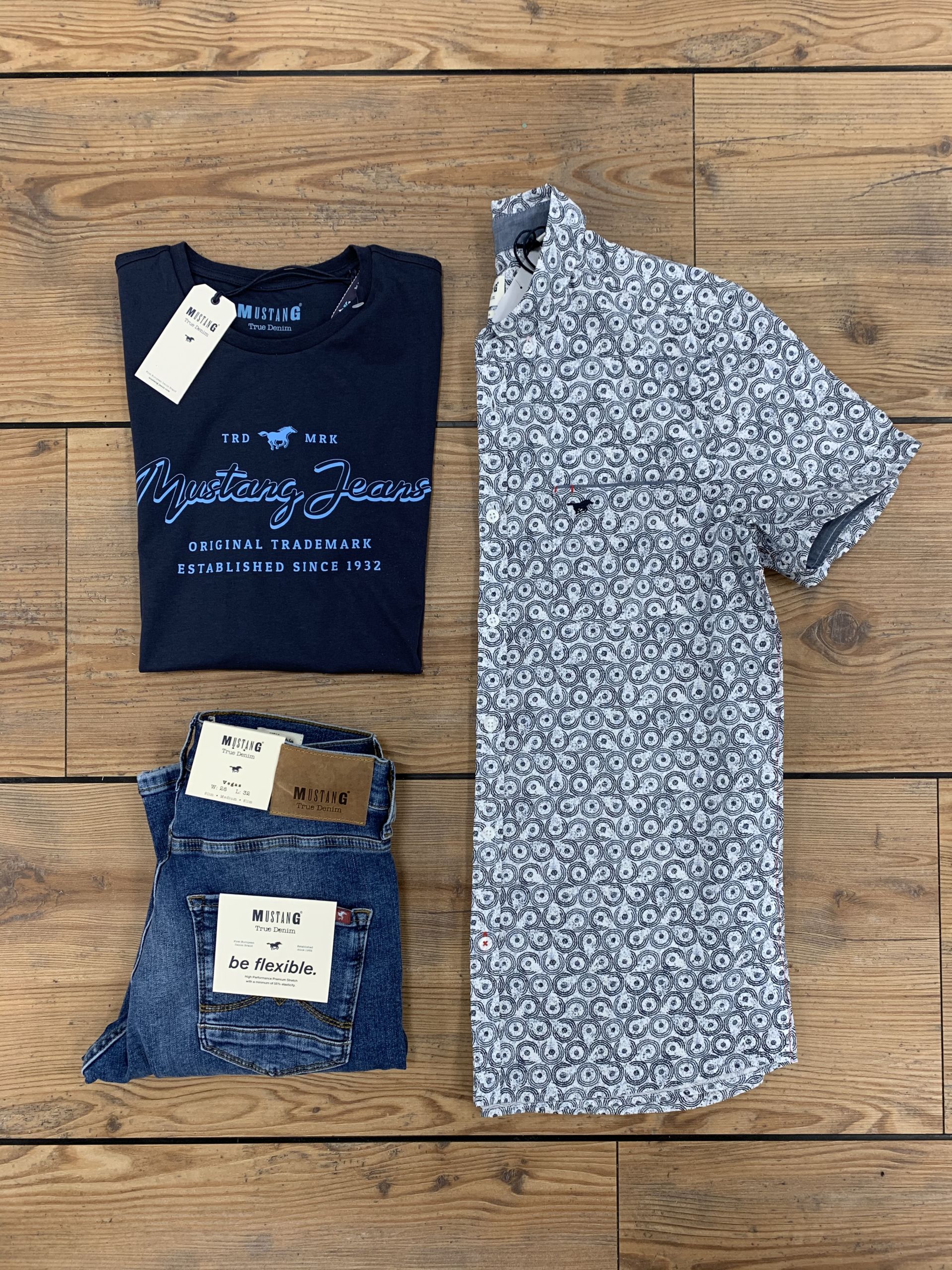 - Mustang: Hemd 40.90€, T-Shirt 14.90€, Hose 70.90€