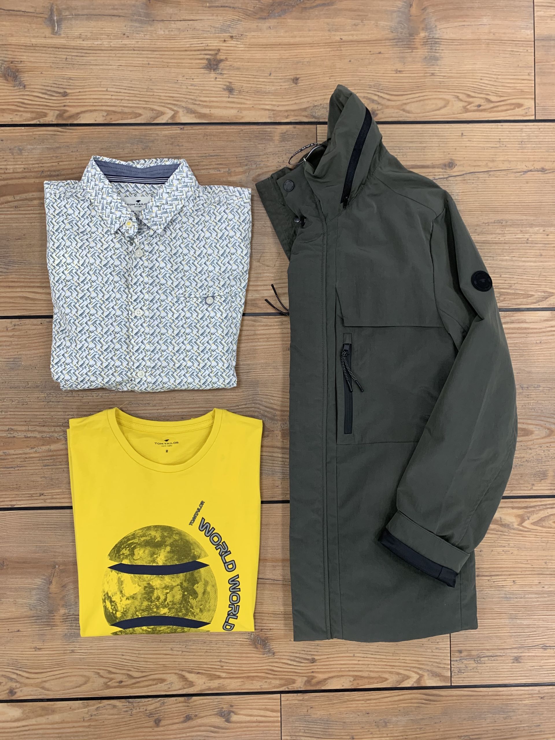 - Tom Tailer: Jacke 139,99€, Hemd 49.99€, T-Shirt 17.99€
